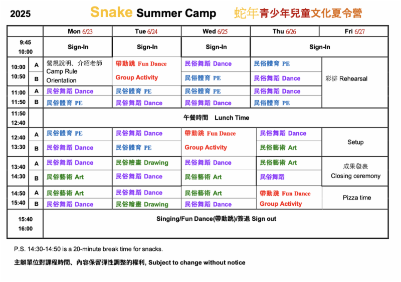 San Mateo County Chinese SchoolSnake Summer CampP.O. Box 806Millbrae, CA 94030